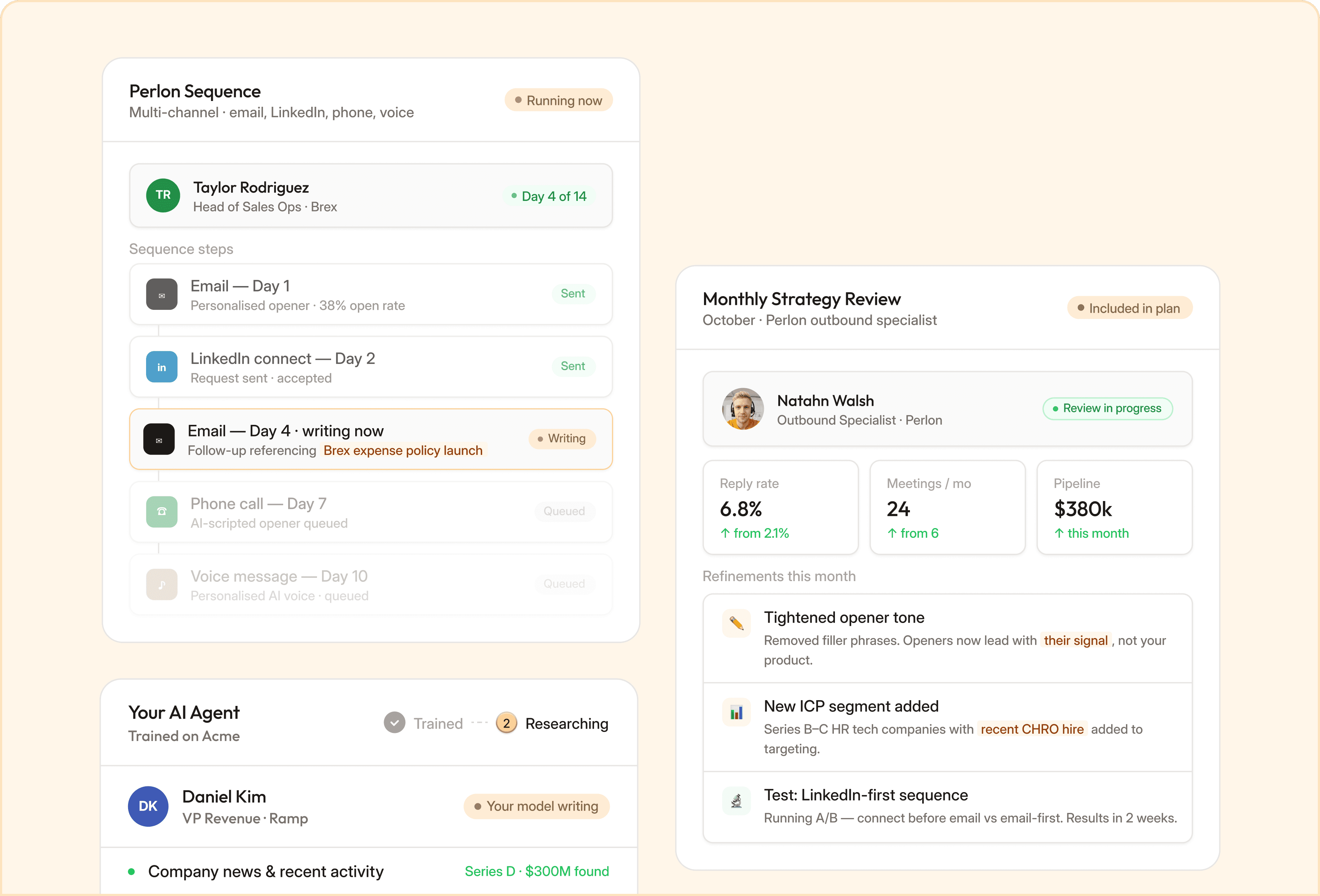 Perlon gives every sales team a private model trained to their brand and data, helping them write human-quality messages that drive real replies.