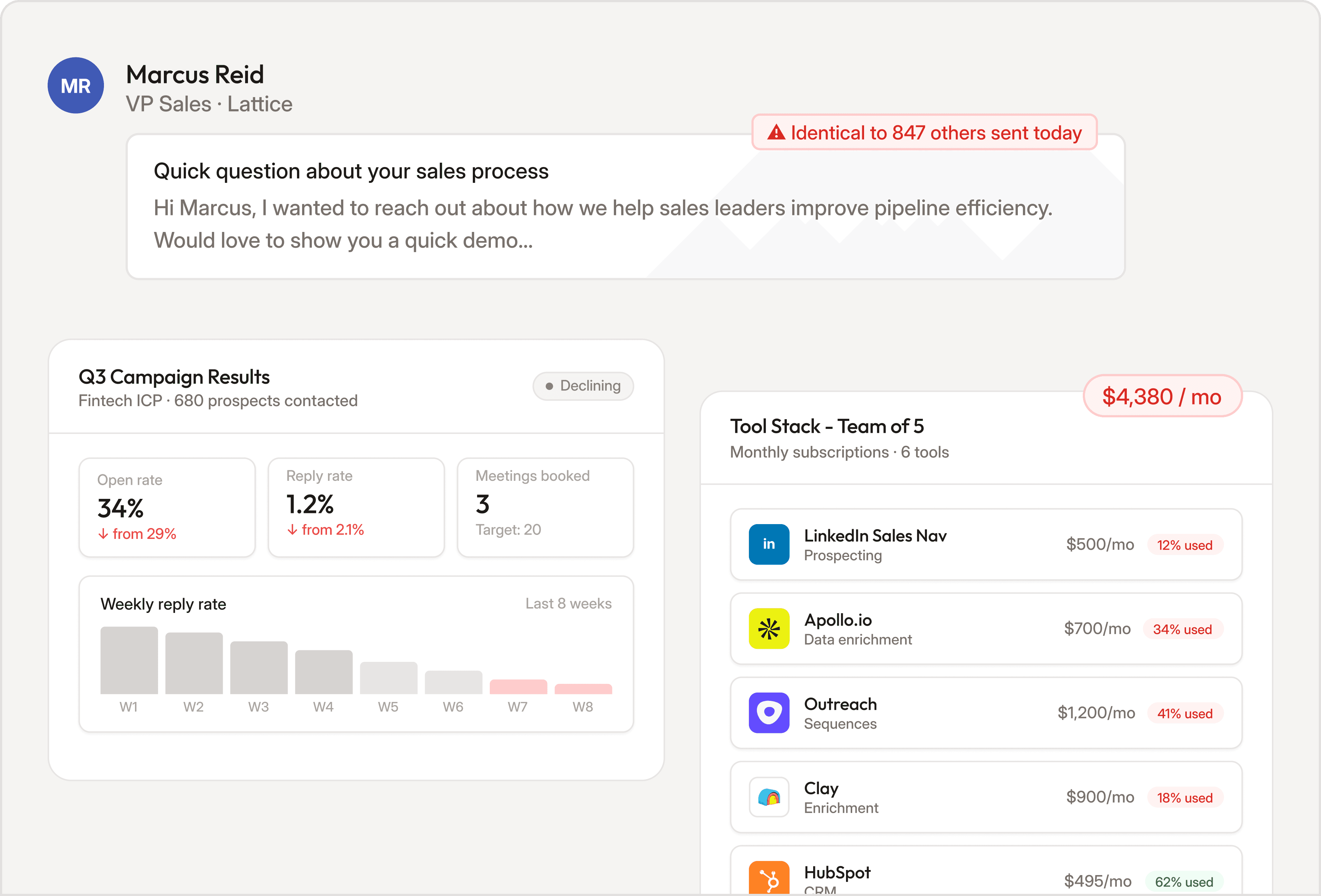 You're running outbound on the same generic models as your competitors. The messages sound like it, and prospects can tell.