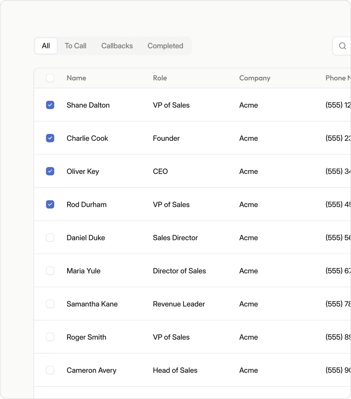 View your daily call list, track callbacks, and monitor outcomes in one place. Notes, recordings, and performance data sync automatically with campaigns to keep your team aligned.
