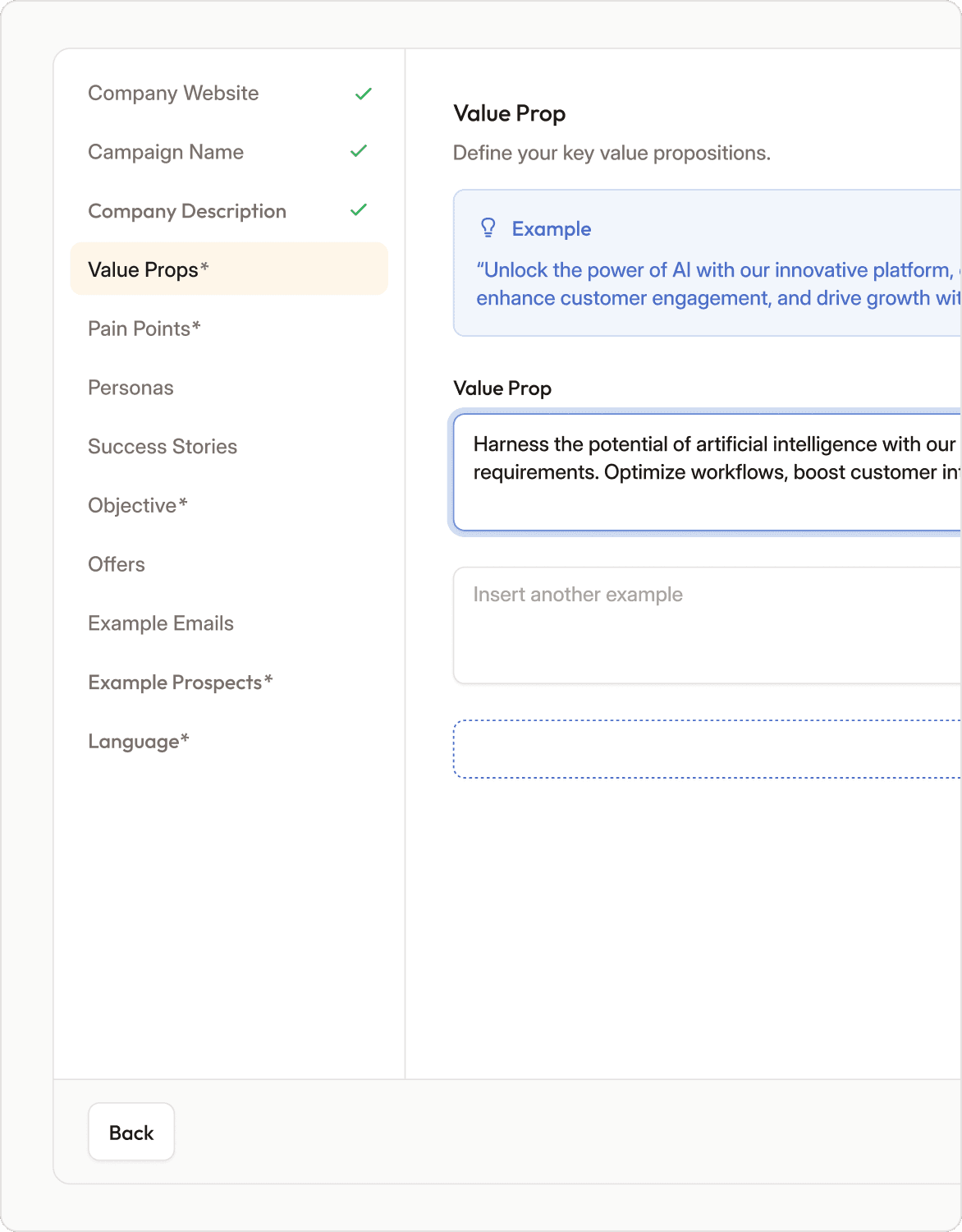We create a model unique to your business, trained on your tone of voice, ICP definitions, case studies, and personalization rules.